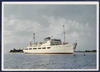 A colour photo postcard featuring the ferry Floria. She was built in 1970 for the Finland Steamship Co and served for Silja Line until 1975, when she was sold to Trasmediterranea to become the Villa De Agaete. Light corner and edge wear and a little light marking / surface marking to the front. A very light surface bend near the bow of the vessel and a very light bend on the top edge, right. Very light marking to the reverse. Size approx 5.75" x 4.2" (VG) |
