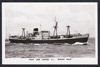 A company printed colour tinted photo postcard featuring the Kano Palm of 1958. Extremely light corner wear. Very light marking to the front with tiny album corner impressions. A small surface crinkle on the bridge of the vessel, otherwise a couple of extremely light surface undulations. Extremely light marking to the reverse. (VG) |
