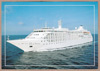 A company colour photo postcard featuring a fine view of the cruise ship Silver Wind. A little light corner and edge wear with tiny dinks to the top left and bottom right corner tips. A very light surface bend to the top right corner. Clean to the front. Minimal marking to the reverse. Size is larger than standard at 6.75" x 4.75". (VG) |