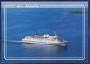 A company colour photo postcard featuring the fast ferry Almudaina and also listing her sistership Alcantara. Very light corner and edge wear with a tiny dink to the top right corner tip. Clean to the front with a couple of surface impressions near the top left corner. Clean to the reverse. Size approx 5.9" x 4". (VG) |